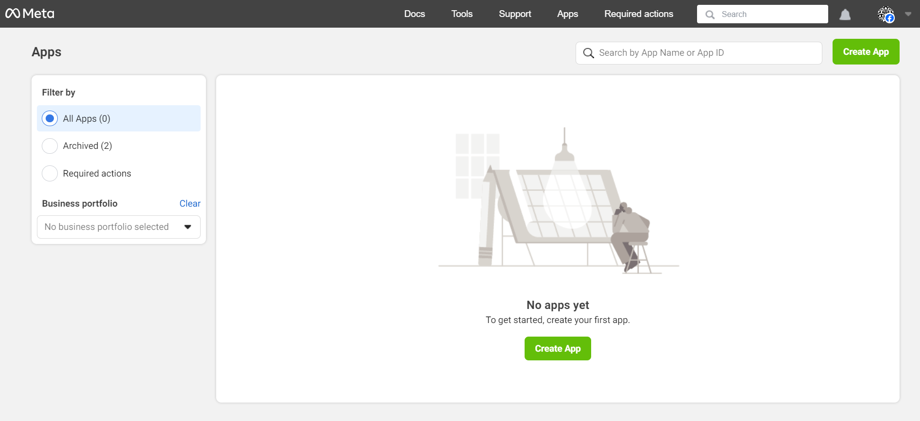 Follow the instructions in the Facebook Meta documentation to complete your registration. Once registered, you'll gain access to the App Dashboard, along with various products, SDKs, APIs, development tools, and developer documentation.