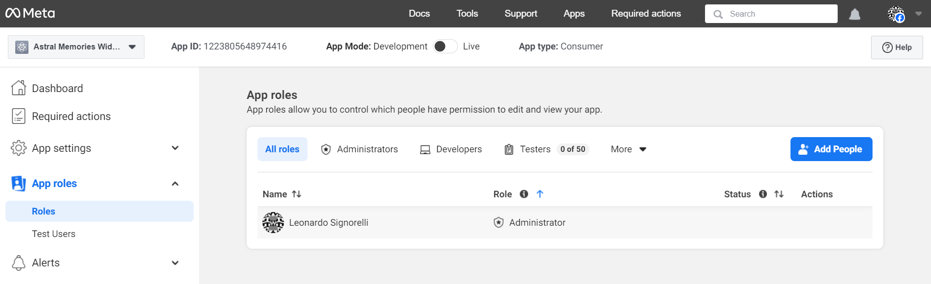 Navigate to App roles > Roles and click the "Add People" button.