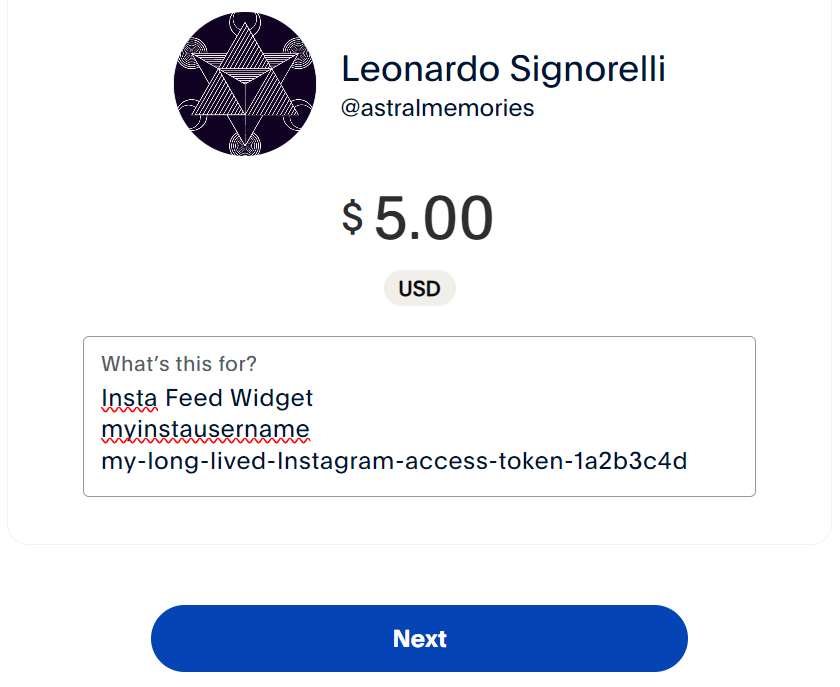 For users who donate $5 or more, I offer an automatic token management service. With my custom script, I'll ensure your unexpired Long-Lived Instagram User Access Token is refreshed before it expires, keeping your Insta Feed Widget running smoothly. This service covers a full year, so you won't have to worry about manually renewing tokens. Once you've donated, I'll add your token to my automated script, and it will be refreshed seamlessly throughout the year.